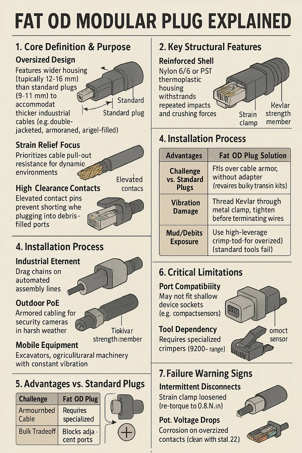 Thiết kế quá khổ: Có vỏ rộng hơn (thường có đường kính 12–16mm) so với phích cắm tiêu chuẩn (9–11mm) để chứa các loại cáp công nghiệp dày hơn (ví dụ: có vỏ bọc đôi, bọc thép hoặc chứa đầy gel).
